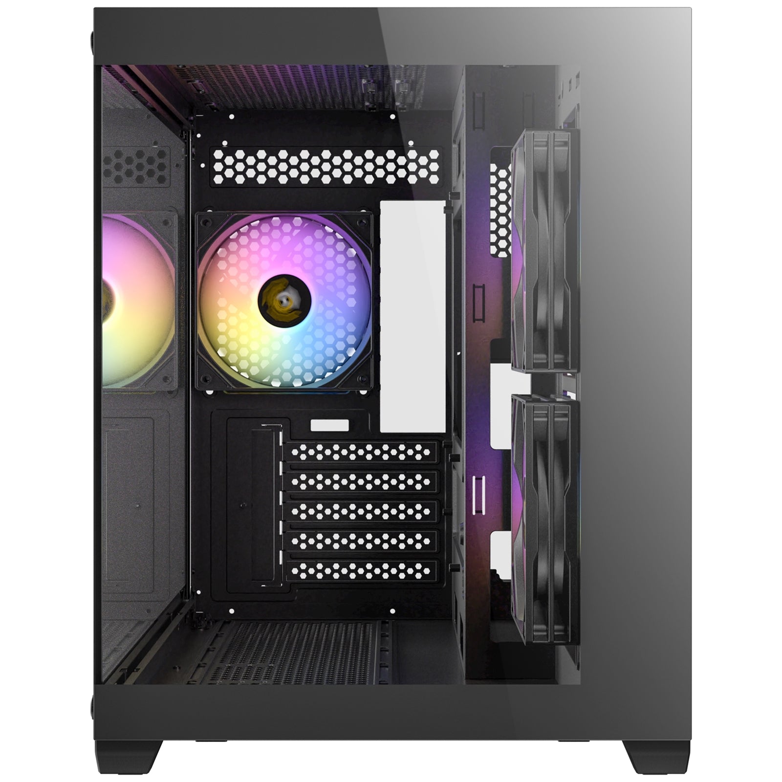 Standing out with a full-view design, the CX600M ARGB's seamless left and front glass panels offer an unobstructed view of your build, creating a stunning showcase for your components. The dual-chamber design keeps the CPU and GPU cooling independent, with the PSU and drives on the right. This design maintains orderly airflow and optimised temperature zones.