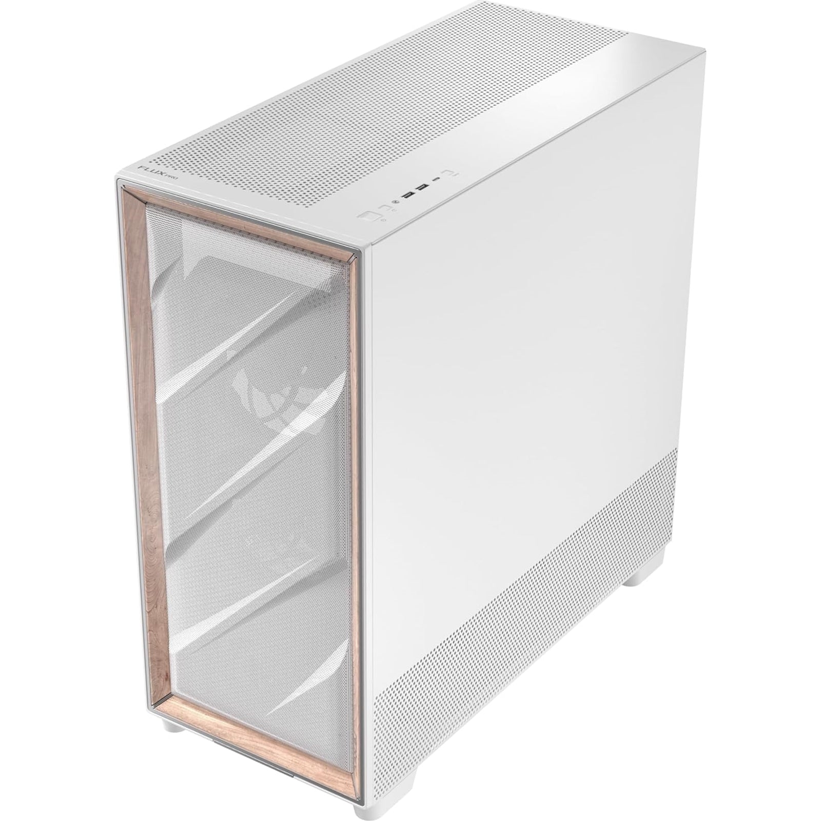 Flux Vertical Cooling enhances heat dissipation through the PSU chamber, boosting the cooling effect for the graphics card. Flux Horizontal Cooling ensures a smooth venting channel throughout the case via the front mesh. The front panel, crafted from a mix of metal mesh and walnut wood, adds a premium touch, blending seamlessly into any home design.