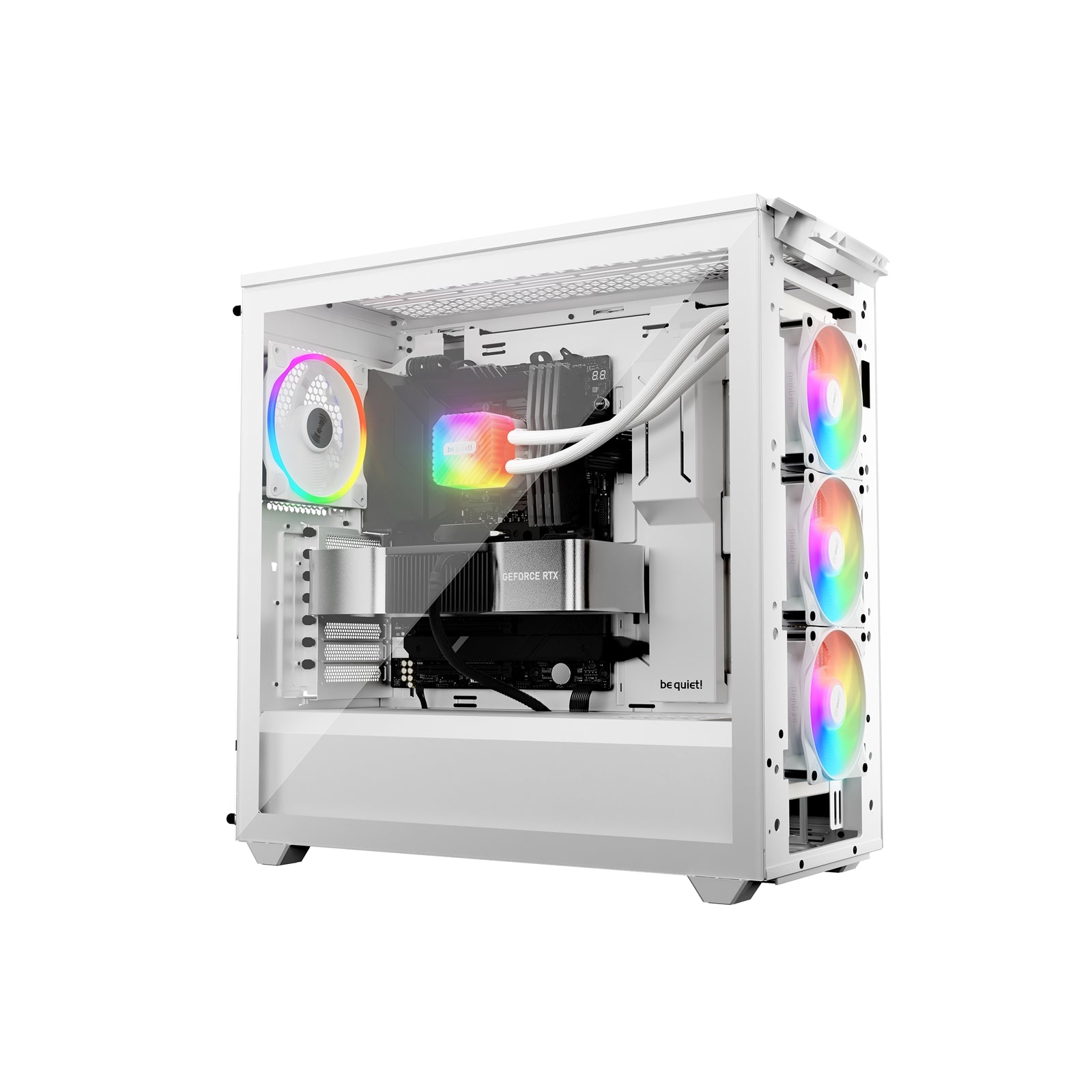 The be quiet! Light Loop 360mm White is an extremely high-performing all-in-one water cooling unit designed for users with heavily overclocked systems. It combines exceptional cooling performance with vibrant ARGB lighting, making it a visually stunning addition to any build. The cooler features a uniquely illuminated ARGB cooling block with multiple illumination options for striking visual effects, and includes three Light Wings LX 120mm PWM high-speed fans for colorful and effective cooling1.
